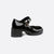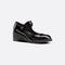 The D-Doll pump offers Maria Grazia Chiuri's modern take on the classic Mary Jane. The black shiny calfskin style is embellished with a decorative button in tonal enamel featuring a gold-tone CD signature. The Christian Dior rubber block heel lends a relaxed touch to the elegant shoe.