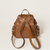 This leather backpack inspired by school gear recalls childhood and combines artisanal appeal and a casual attitude. The distinctive multi-pocket design embodies the contemporary and playful spirit of Miu Miu bags.