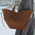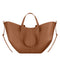 This sculptured tote bag featuring waves, folds, and curves can be used in two ways. The first is a basket, its sides open, its straps on the outside. The second is a floral, closed bag, its sides tucked in, its straps crossing on the inside. Its name was inspired by the French word “cime”, meaning a peak or mountain crest, in reference to the ridge running along it.
