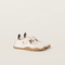 Tyre combines elegance and sporty functionality. The dynamic rubber sole, which is flexible and scuff-proof, recalls the pattern on tires. Made of technical fabric and suede, this version of the ballerina expresses Miu Miu's bold identity.