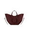 This sculptured tote bag featuring waves, folds, and curves can be used in two ways. The first is a basket, its sides open, its straps on the outside. The second is a floral, closed bag, its sides tucked in, its straps crossing on the inside. Its name was inspired by the French word “cime”, meaning a peak or mountain crest, in reference to the ridge running along it.